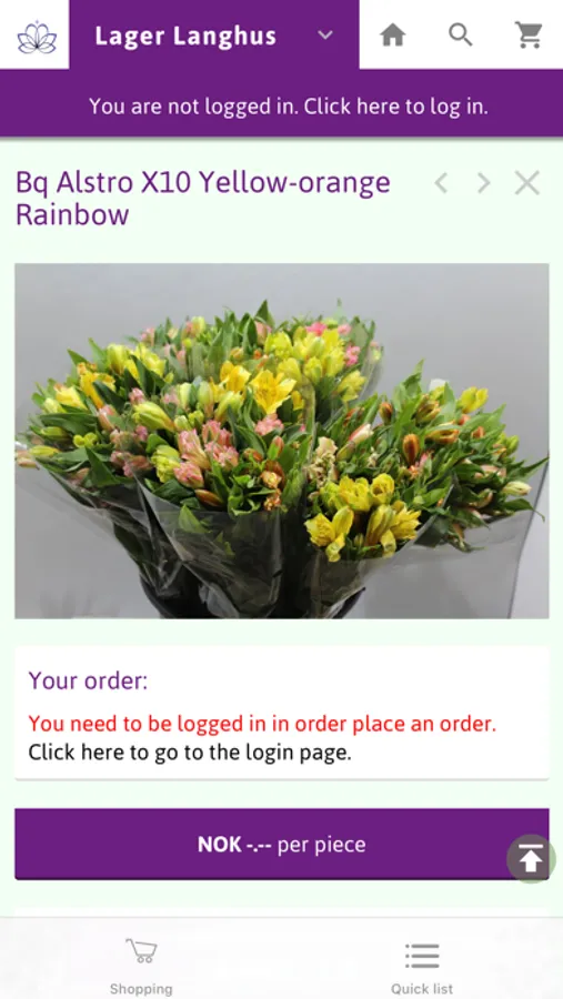 U kunt de Flower Direct App gebruiken om online bloemen te kopen uit onze grote voorraad. Gebruik dezelfde gebruikersnaam en wachtwoord als in de webshop. Als je geen toegang hebt, kunt u zich registreren op http://www.flowerdirect.no