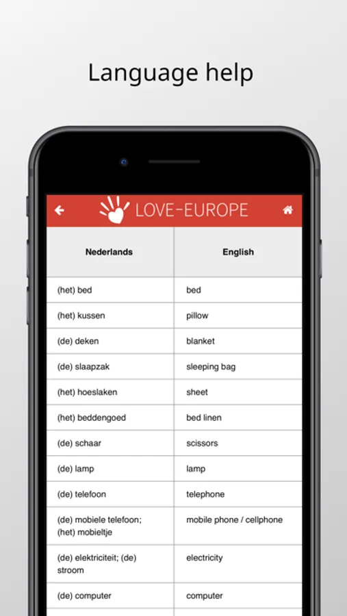 The app will also help you communicate during your travel and your stay. The app is multilingual and is always using two languages, so you can use it also as communication tool.