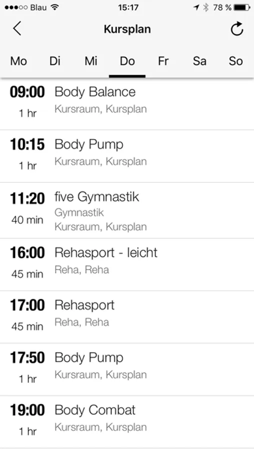 Direkter und aktueller Zugriff auf den Kursplan Deines smileBEST Fitness Clubs von überall: Für jeden Kurs kannst Du Details wie Zeit, Kursbeschreibung, Raum und Merkmale wie z.B. den Schwierigkeitsgrad einsehen.