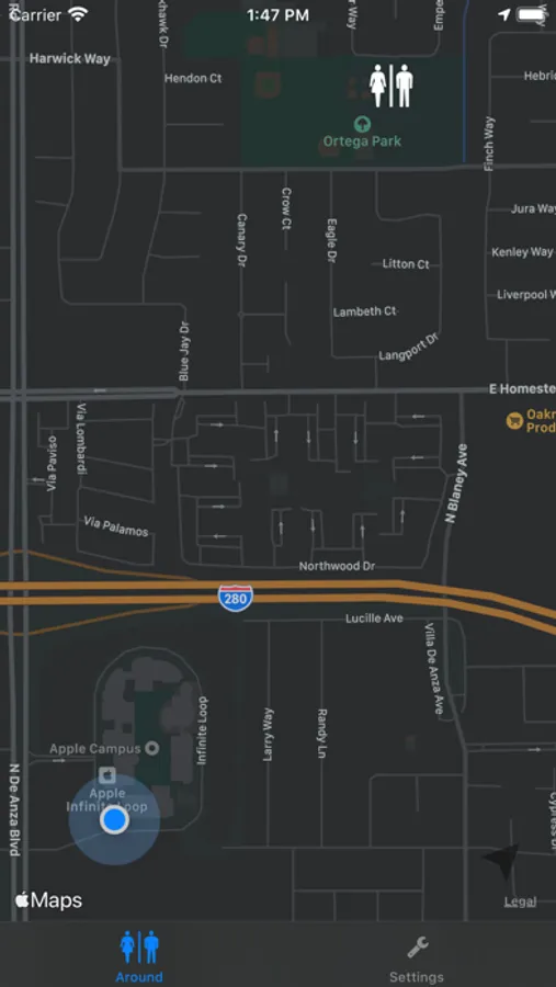 This app uses always growing OpenStreetMap data and the Overpass API to find publicly accessibly toilets around you. Find the one next to you in a pool of over 120.000 toilets and counting.