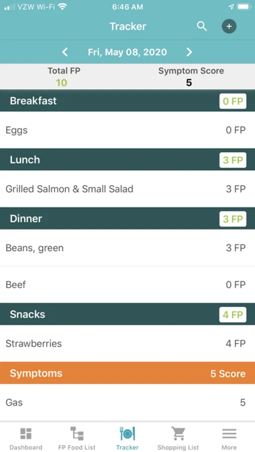 Fast Tract Diet App helps you identify gut friendly foods versus hard-to-digest foods, track and chart your meals and symptoms, create shopping lists and quickly look up symptom potential for specific foods & drinks at your favorite market on the fly.