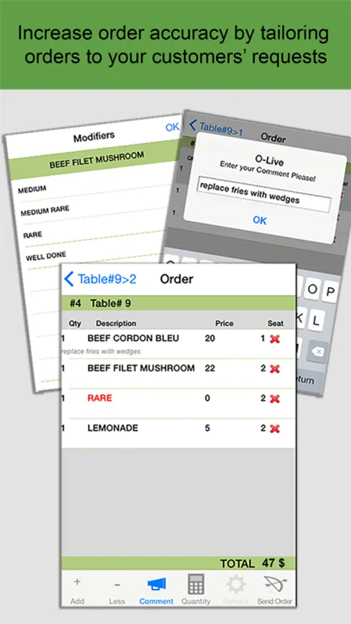 Olive mobile POS solutions ,designed for iOS devices, is an extension of O-live restaurant management software which allows your staff to submit orders at the table, and provide managers with mobile access to manager functions for more efficiency, with fast and complete POS Functionality.