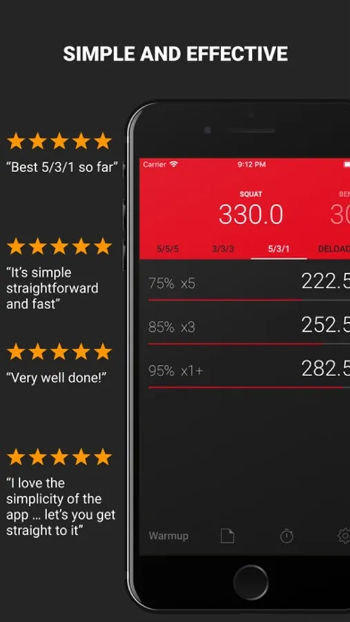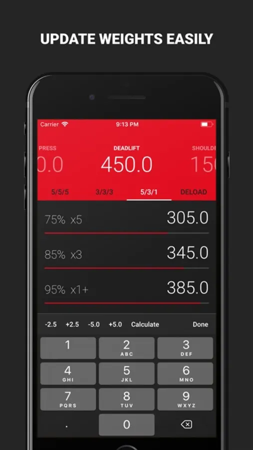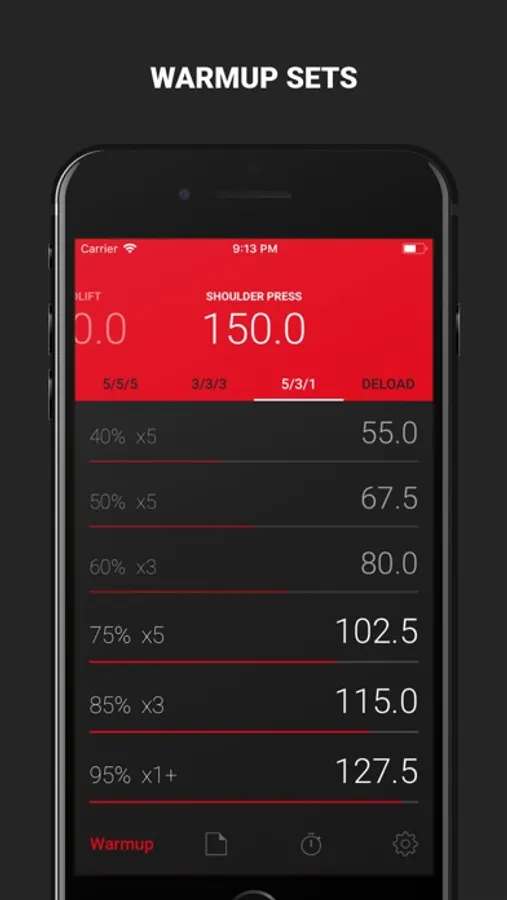 Makes it quick and easy to get a full overview of all weights, reps and sets based off your 1RM when you’re following the 5/3/1 program.