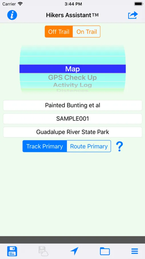 File and iCloud modules support loading, unloading, importing, and exporting (via email and iCloud) a variety of binary and text formats for any number of trails. Trail data and blogs are saved in binary files. Waypoints, routes and tracks can be saved or imported from GPX files. Lists of waypoints can be imported and exported in CSV format.