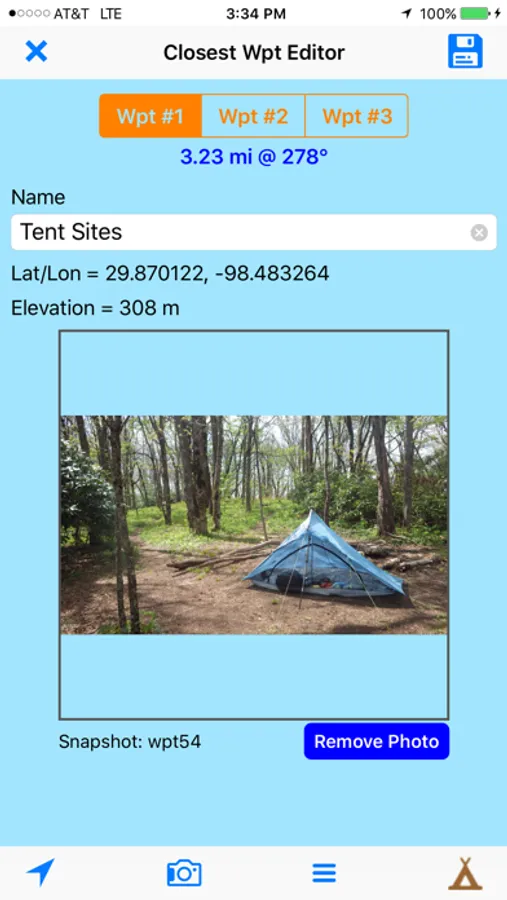 Create quick waypoints in seconds on trail that include latitude, longitude, elevation, an icon (from a broad set of options), an optional snapshot, and a customizable name.