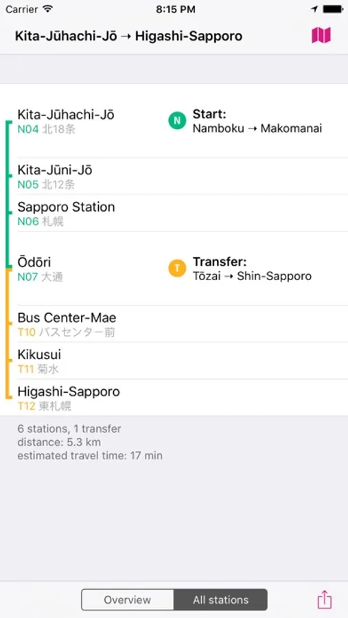 ROUTE PLANNER - instantly finds the fastest route and displays it on the map including transfer stations.