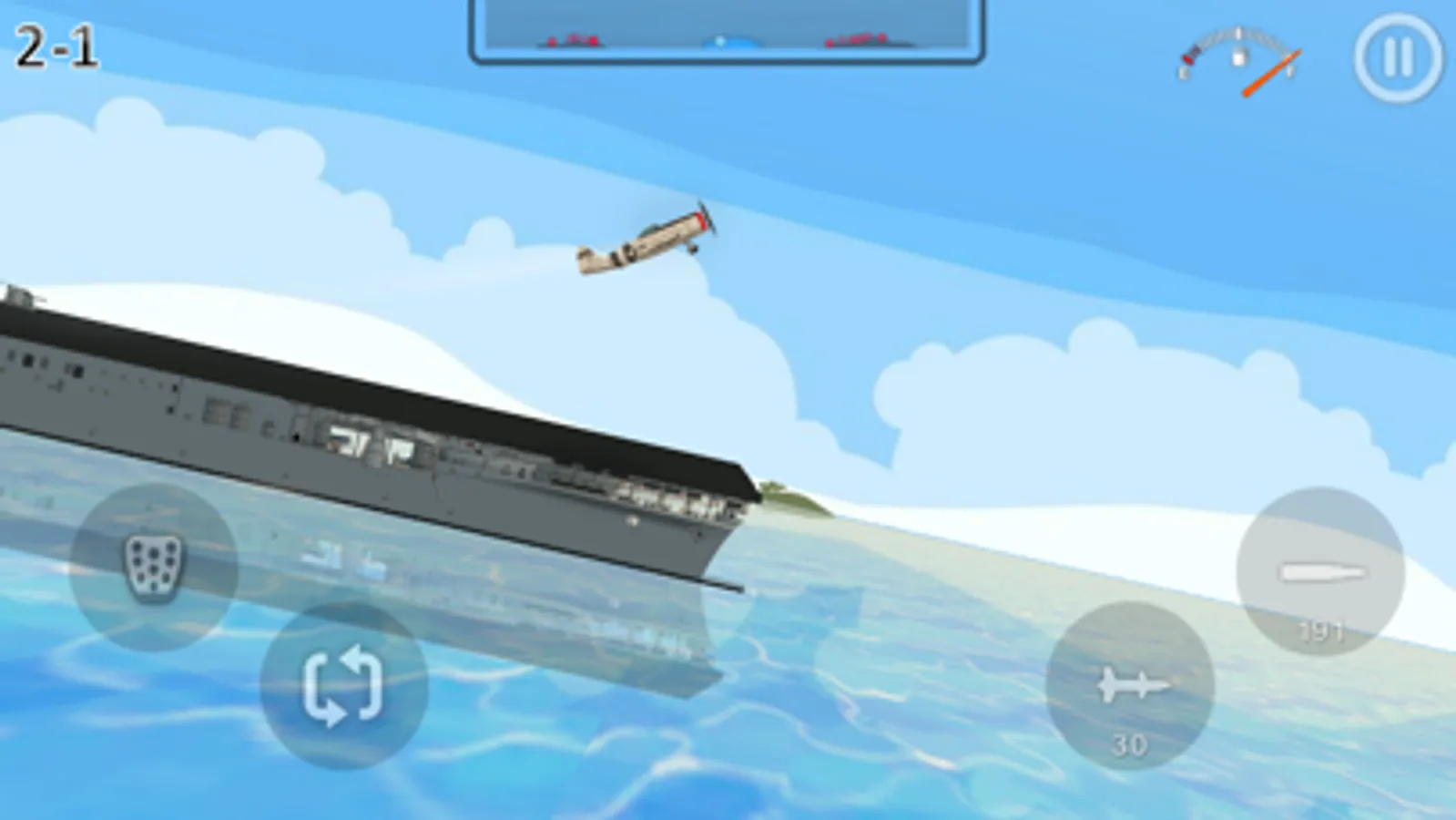 Control the plane by tilting the phone. Swipe the screen or press swap button changes the direction. Fire weapons or slow down the plane with the other buttons.