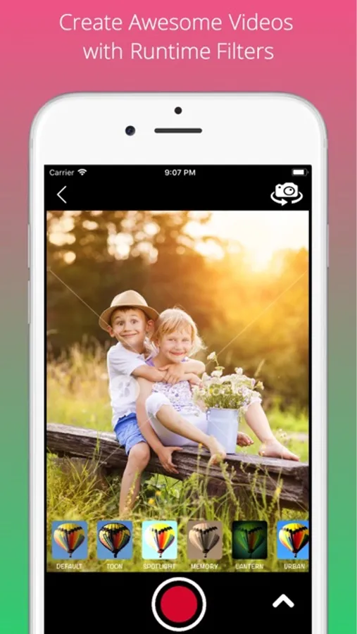 The multi filtered video feature give you the ability to make awesome and unique videos including some of the top filters including toon, sepia, spotlight, love etc.