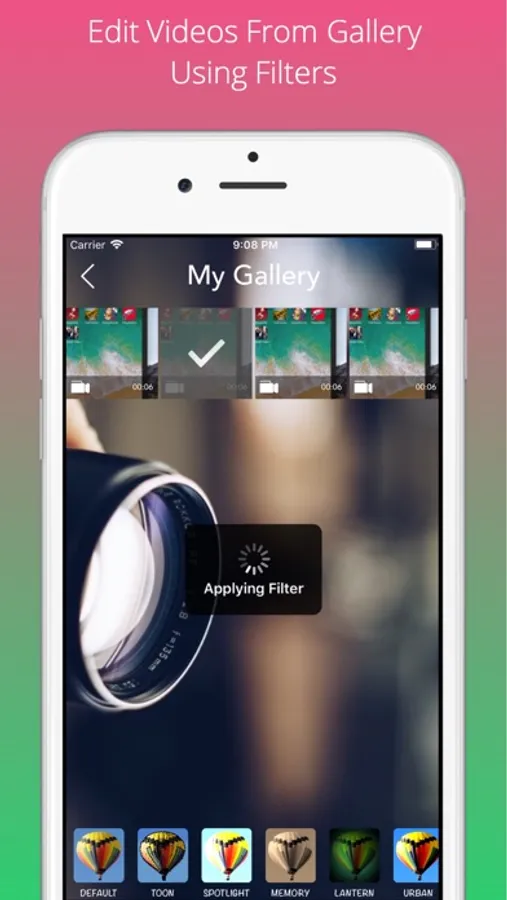 Moreover you can also filter your Existing videos from Gallery but they can be filtered using One Filter Only. The multi filtered video feature is only available to the newly recorded videos using Wonder Video app.