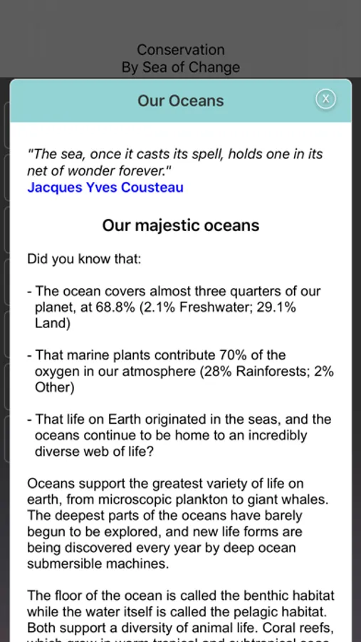 This fully detailed and comprehensive app is dedicated to all that wish to learn and understand the current state our Oceans and it's inhabitants, what is needed. Most importantly, how you can help.