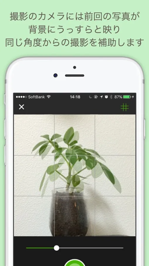 前回の写真が撮影の邪魔になるときは透明度を変えてみましょう!