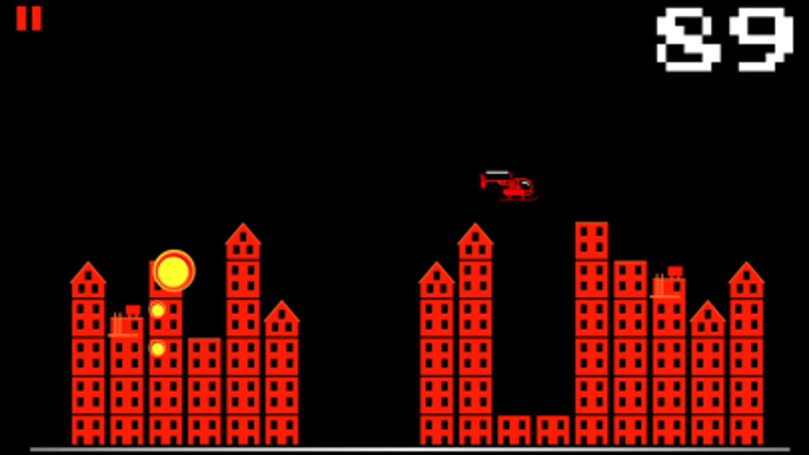 Try to blow up all the buildings with your helicopter, before you crash into them. Tap on screen to drop your bomb.