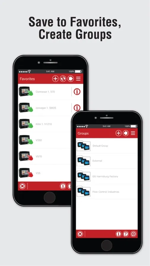 The Remote Operator application enables you to remotely access your Unitronics controllers using your smartphone and tablet. Via the application, you can view and operate the controller’s HMI —as if you are physically touching the controller. Using Remote Operator you monitor automation processes, press keys and touch HMI objects, change parameter values, view Alarms and process value Trends. You can define and access multiple controllers from a single device.