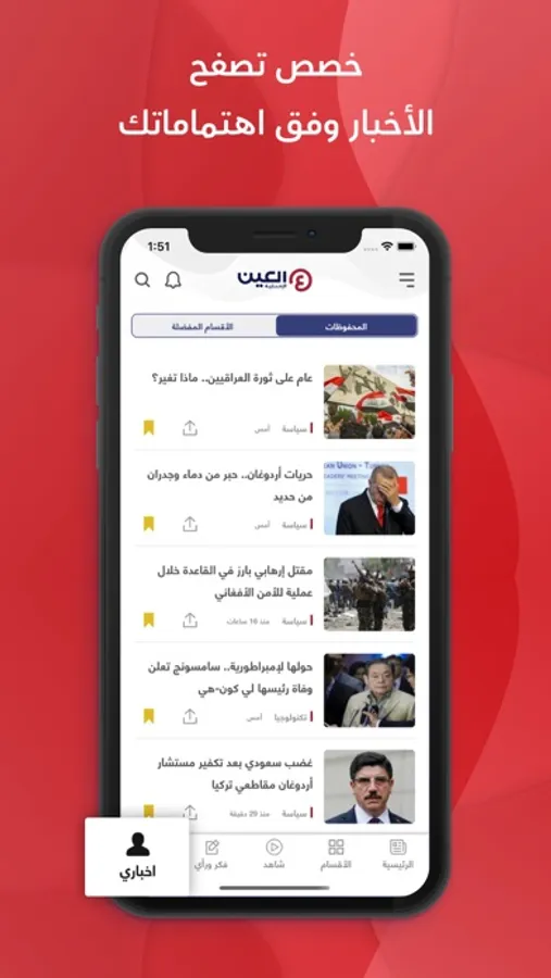 • حفظ المحتوى المفضل في صفحة "أخباري".