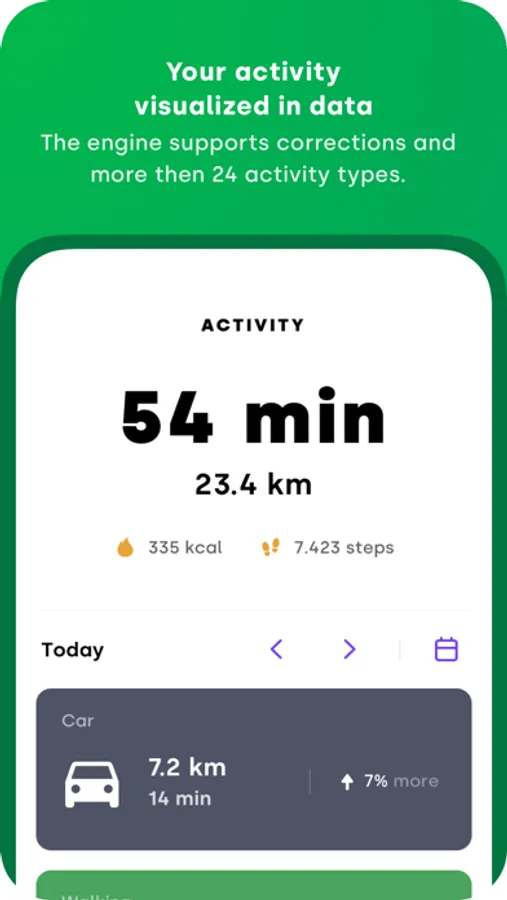- A learning engine that makes it possible to achieve increasingly accurate and detailed recordings of visits and trips, personalised specifically for you