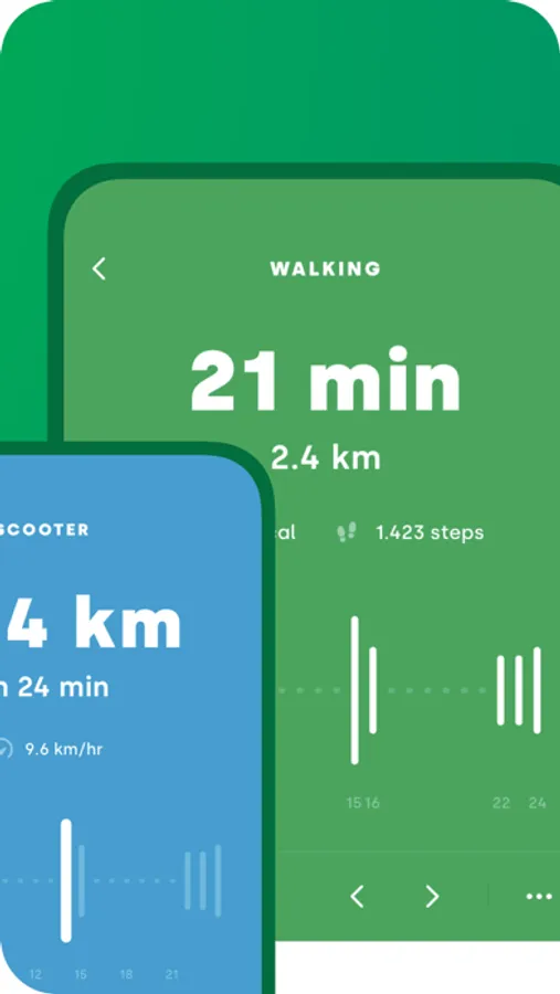 - Automatic detection and recording of walking, running, cycling, driving, train, tram, bus, airplane, motorcycle, boat, skiing, snowboarding, wheelchair, and many more