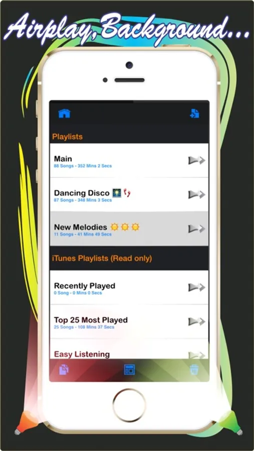 • Unlimited User Created Playlists including iTunes Playlists (read only).