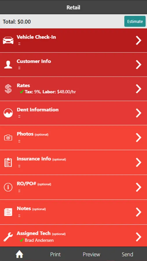 Mobile PDR Estimate Software by DentMate - Serves paintless dent repair professionals by helping them create PDR Hail & Dent estimates using mobile devices. Get rid of the paper, and deliver professional PDR Estimates/Invoices for your company.
