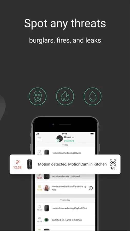 The detectors instantly capture an intruder on your property, doors or windows opening, and glass breaking. As soon as a person enters a protected area, they will be captured by the photo camera of the MotionCam detector lineup. You and the security company will know what happened.
