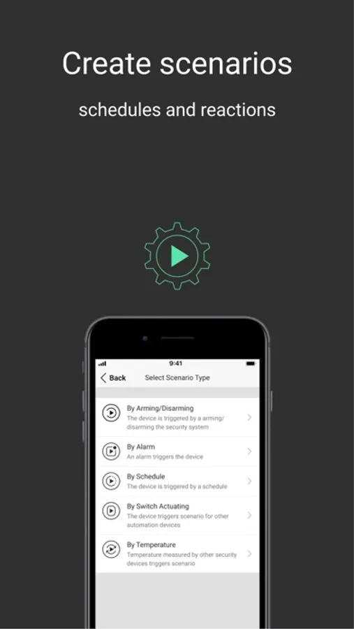Change security modes up to a schedule, program the outdoor lighting to turn on when strangers are detected on your property, or implement an anti-flood system. Manage gates, electric locks, lighting, heating, and electrical appliances. In the app, automatically by scenario or by pressing a smart button.