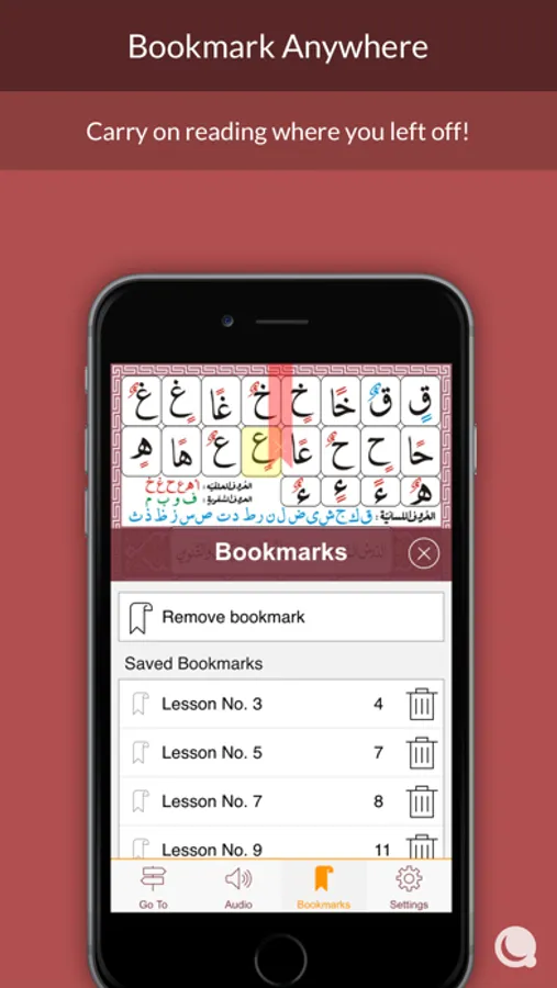 This app follows the progressive/step-by-step format starting from recognition of alphabets to reading complete sentences from the Quran using the correct pronunciation (tajweed) rules of reciting in Arabic style.