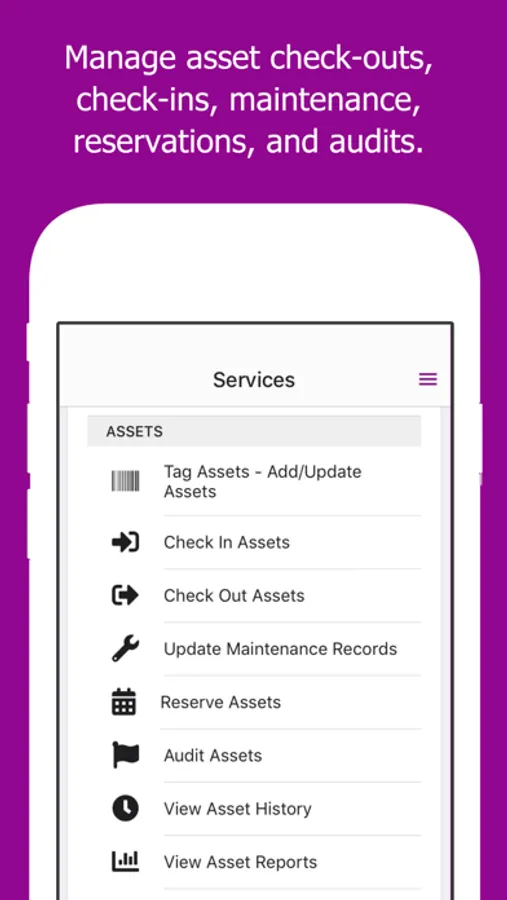 - Check out - enables you to record who has borrowed or is in possession of an asset