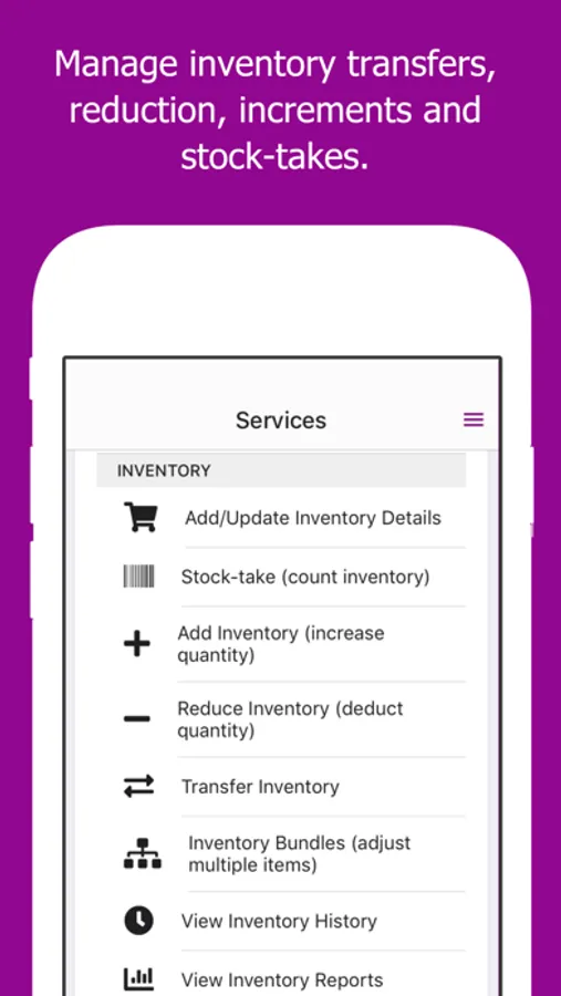 - Add/Reduce Stock - enables you to make inventory quantity adjustments