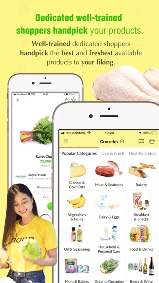 Shop more than 10,000 safe, organic, and high-quality imported and local groceries from local trusted stores & supermarkets. Have everything delivered at once to your door in 1 hour or choose a specific hourly delivery window. Grocery shopping in Vietnam has never been this convenient!