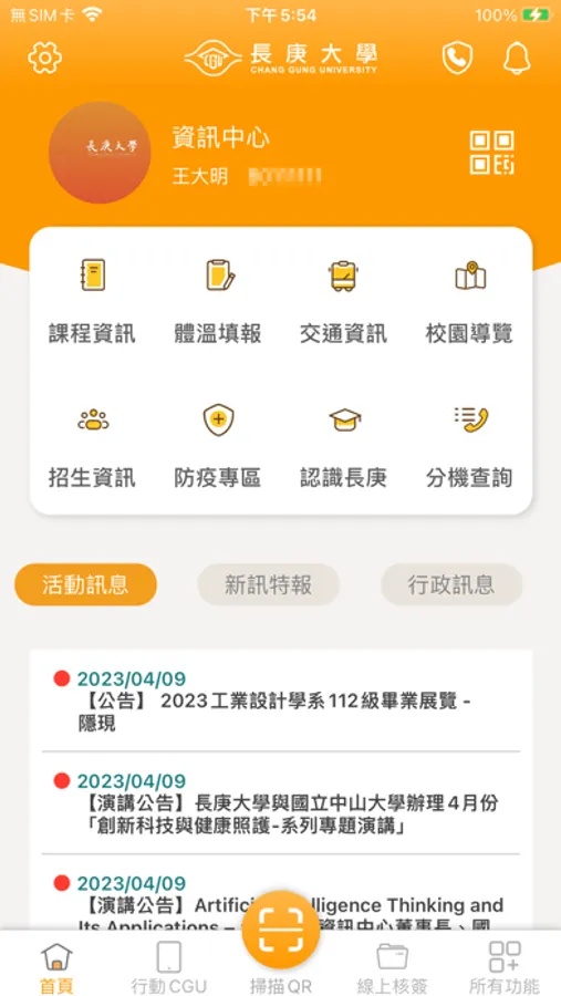 「長庚大學」APP 提供教職員、學生、校友及希望認識本校的社會大眾,方便快速地透過各種智慧型裝置即時取得所需資訊與服務的互動平台。