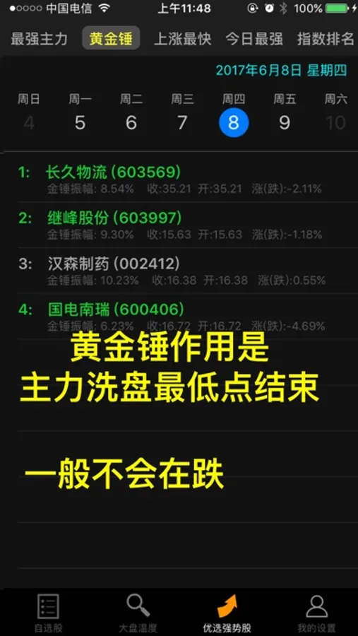 系统通过纵向识别K线,横向计算个股在大盘中的位置。有效的抓住真正的龙头股。简单粗暴的在第五步提示上涨股票。