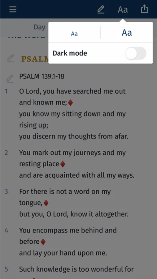 • Full audio is now provided for each service. The app now includes audio versions of both services every day. Tap the play icon to start or pause the audio, and skip forward or backwards through the service using the scroll bar.