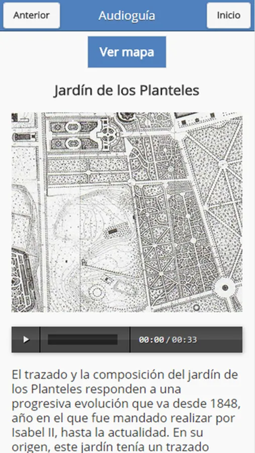 • Audioguía de nuestra selección de elementos imprescindibles y de las rutas por itinerarios de jardines e historia.