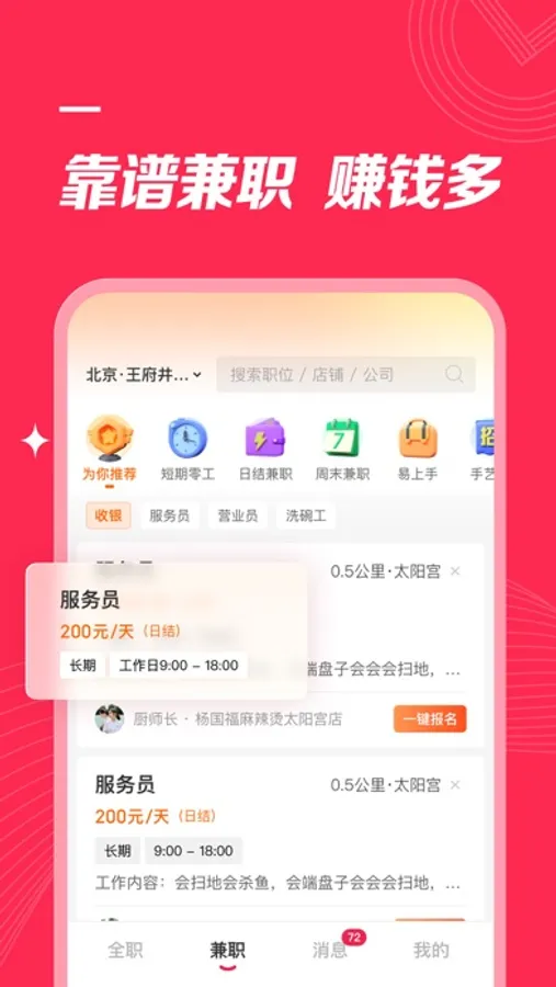 【职位真,离家近】严格的职位审核机制保证职位更真实,基于定位推荐附近的职位!