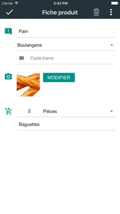 Vous pourrez ensuite éditer la quantité, l'image... et ajouter des notes pour vous en rappeler pendant les courses !