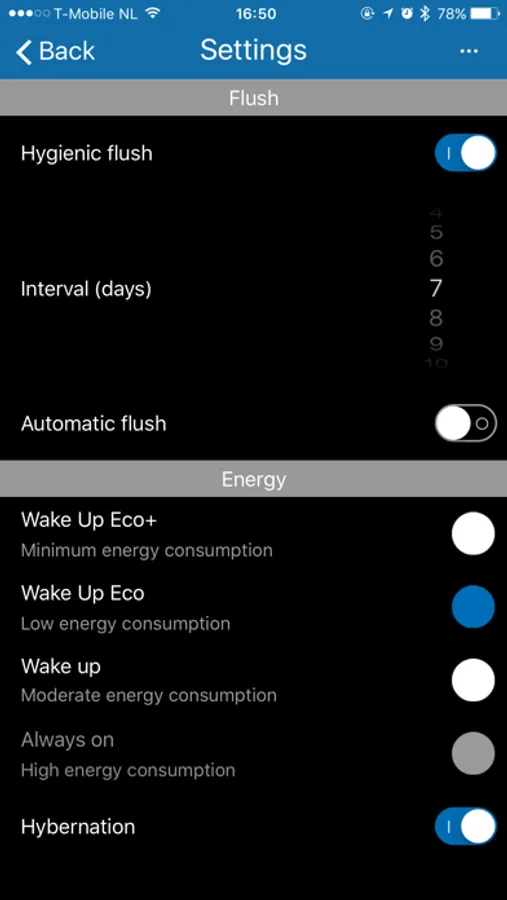 With the WISAtronic Application you can easily change and personalise the settings of the non-touch WISAtronic control panel. Modify the colour of the LED lighting on the control panel, or change settings for toilet flushes, energy consumption or security. Enter service settings or read out statistical details.