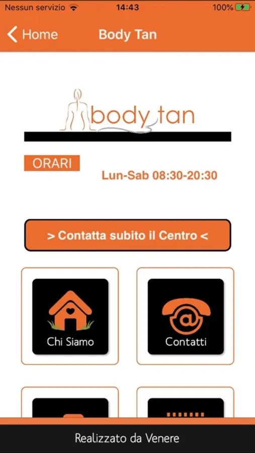 L' app è stata pensata e progettata su misura per i clienti del centro estetico "Body Tan". Si possono effettuare prenotazioni di trattamenti, consultare la propria fidelity card, visualizzare promozioni e così via.