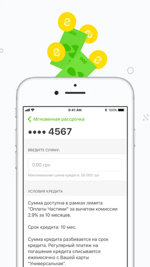 - Показывает доступный лимит на покупки по сервису «Оплата частями»