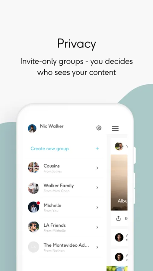 Share photos, video, comments and loves with family and friends in secure, private groups, away from social media,