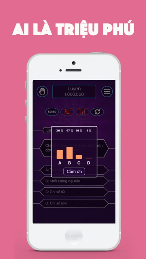 Giao diện đơn giản mà đẹp mắt, cách chơi quen thuộc nhưng không kém phần thú vị, đặc biệt từ câu 5 trở đi bạn sẽ được thêm một quyền trợ giúp đổi câu hỏi.