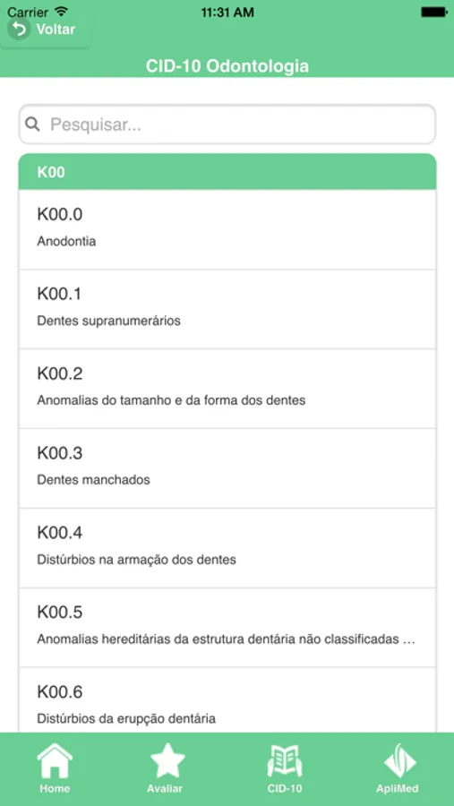 É um aplicativo muito útil e prático, para que você possa consultar rapidamente todos os códigos internacionais de doenças relacionadas a Odontologia e Estomatologia.