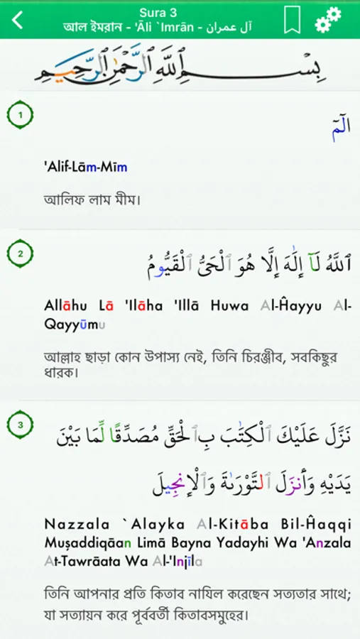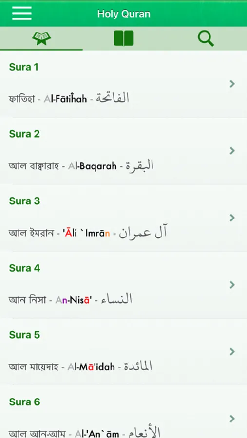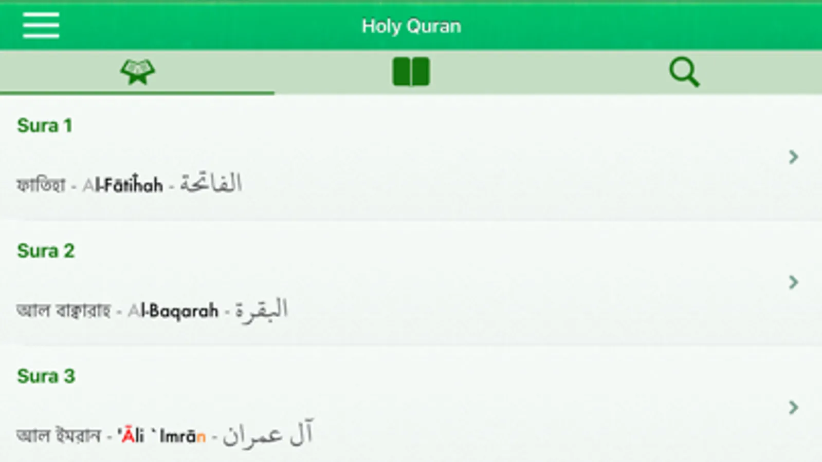 - 114 suras of the Quran to read in Bengali and in Arabic