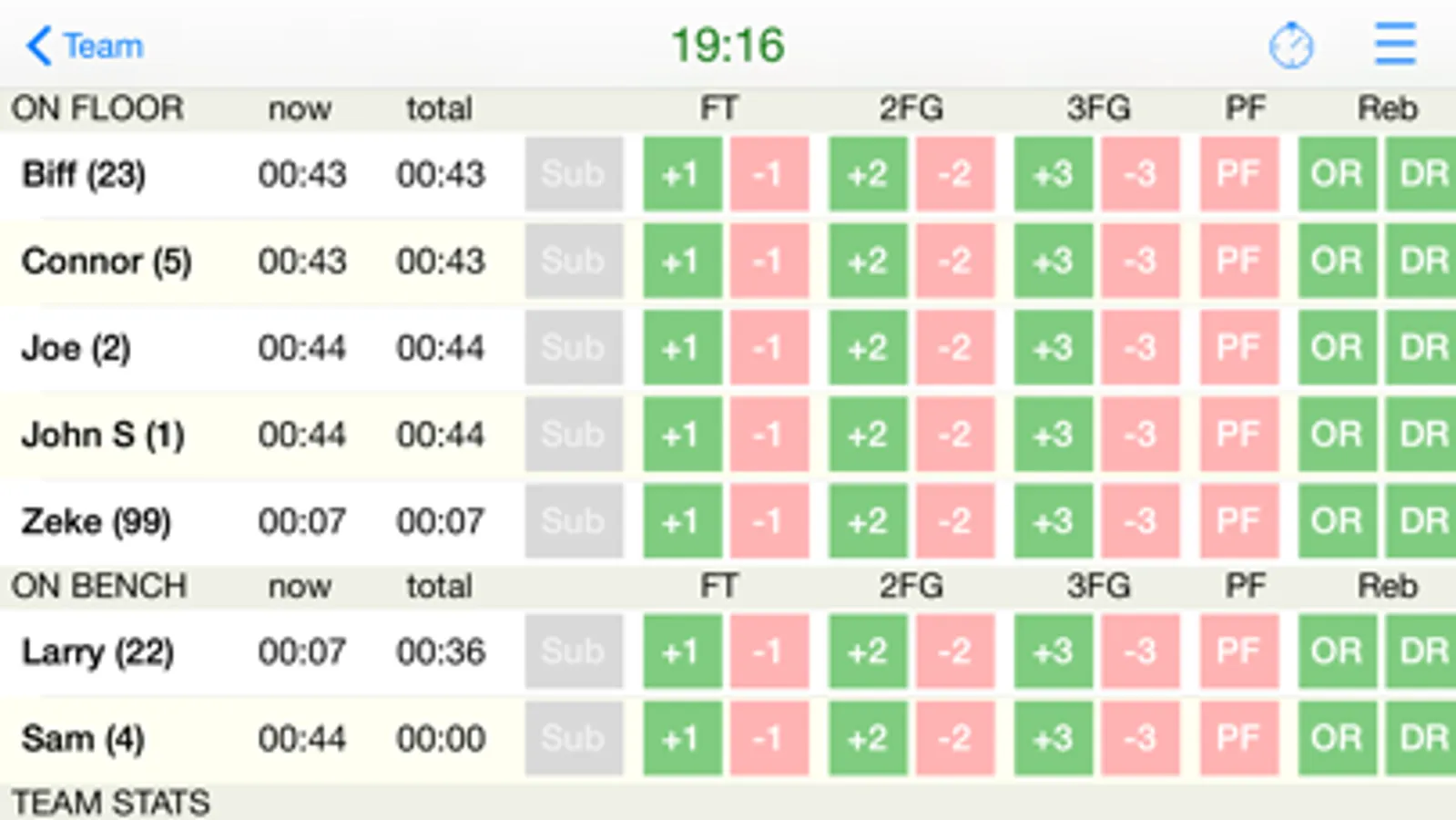 For youth basketball coaches and parents, this application tracks playing time (optional) and statistics during a game. Provides an easy way to ensure minimum playing time for each player, keep track of how much each player has been on the bench, and record key statistics for review after the game. The design of this application is simple, quick, and easy to use, providing what you need without alot of clutter and useless features. You don't need to be trained to use this app, it's very simple and quick to use.