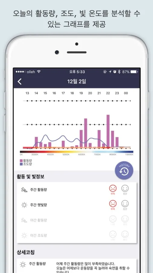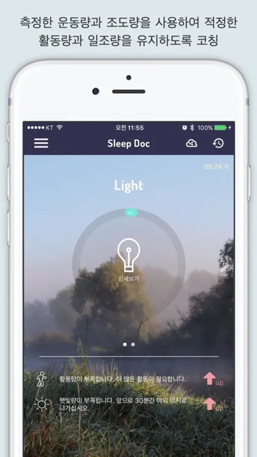 • 햇빛 노출량을 계산하여 수면에 필요한 양보다 부족하거나 관한 경우 스마트 밴드에서