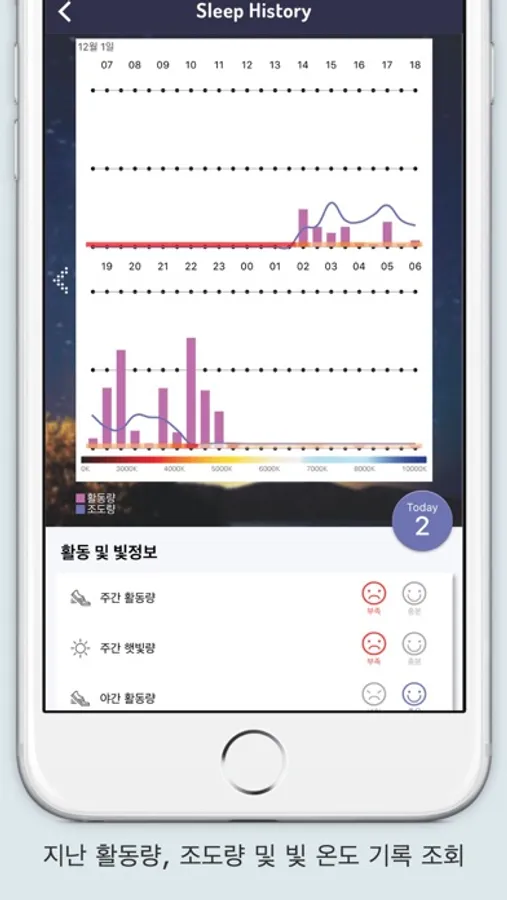 • 수면에 방해되는 조명에 노출된 경우 스마트 밴드에서 진동과 LED로 알려줍니다.