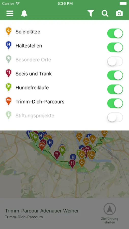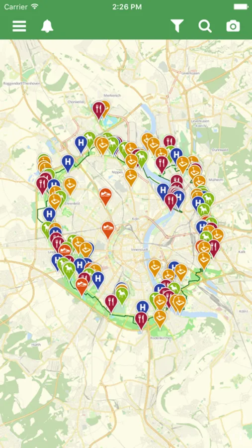 Der historische Äußere Grüngürtel, der sich rund um Köln zieht, ist ein wesentliches Element des einzigartigen gesamtstädtischen Grün-Systems der Stadt Köln. Etwa 90 Jahre nach dem Beginn der ersten Ausbauarbeiten zeigt sich ein Wandel, vom die Stadt umgebenden Wald- und Wiesengürtel hin zu einem intensiv genutzten Erholungsraum für die Kölner Bevölkerung, der gleichzeitig wertvolle ökologische und klimatologische Funktionen erfüllt. Die von der Kölner Grün Stiftung gesponserte App zeigt den 63 Kilometer langen Weg durch den Gürtel im Links- wie auch Rechtsrheinischen. http://www.koelner-gruen.de/das-koelner-gruensystem