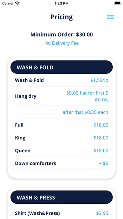 We provide the highest quality of laundry (We do the laundry on site! No third parties for you to worry about loosing your clothes)