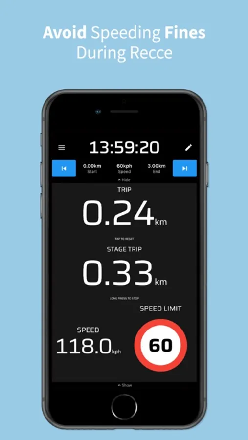 Avoid Speeding Fines During Recce: During the recce phase, drivers and co-drivers often find themselves navigating unfamiliar roads and may accidentally exceed the speed limit. Rally Tripmeter's built-in speedometer helps you avoid speeding fines by keeping you aware of your speed at all times.