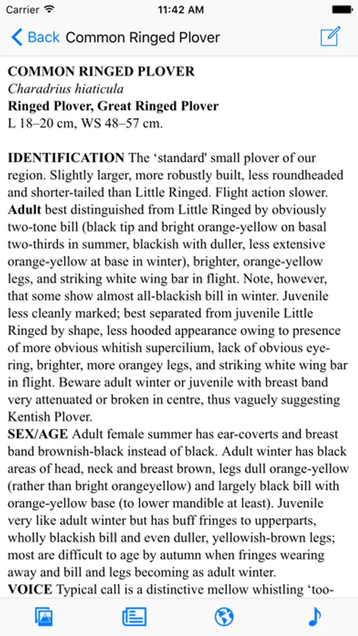 Multiple hi-res images, distribution maps and detailed text descriptions for most of the over 250 bird species included.