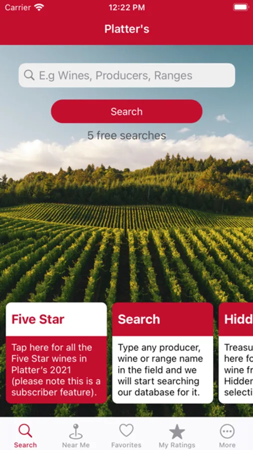 PLEASE NOTE -- THIS APP IS FREE TO DOWNLOAD BUT THEREAFTER A PAID SUBSCRIPTION TO PLATTER'S DATA IS REQUIRED. A SUBSCRIPTION IS VALID FOR ONE YEAR AND INCLUDES ACCESS TO THE WEB-BASED GUIDE (WWW.WINEONAPLATTER.COM)