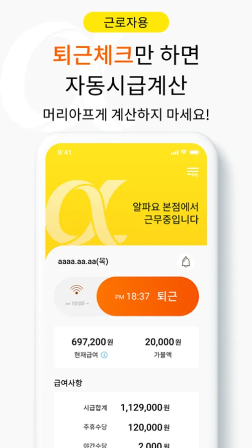 3. 출퇴근 기록과 시급기록은 점주(관리자)앱과 공유